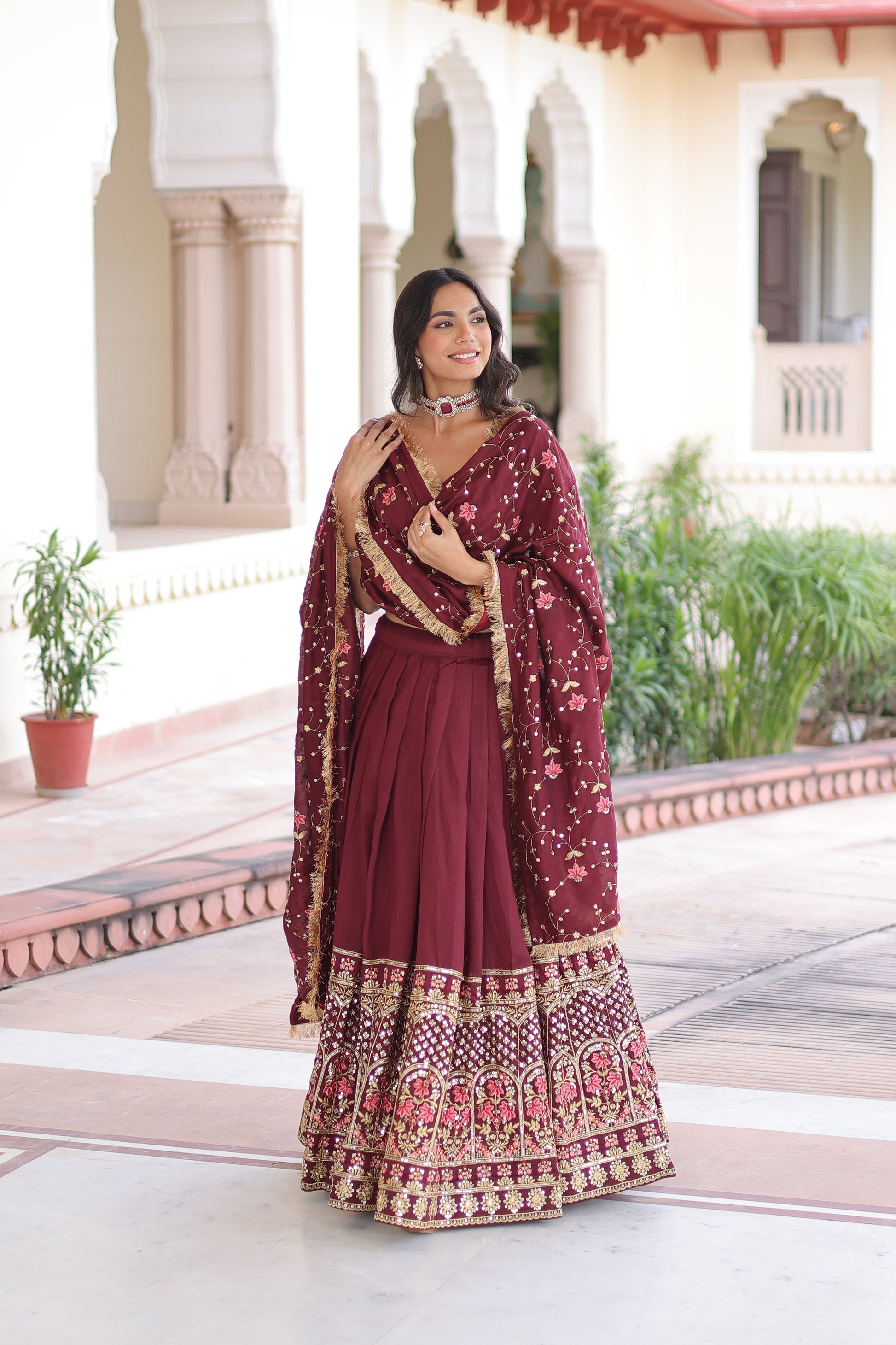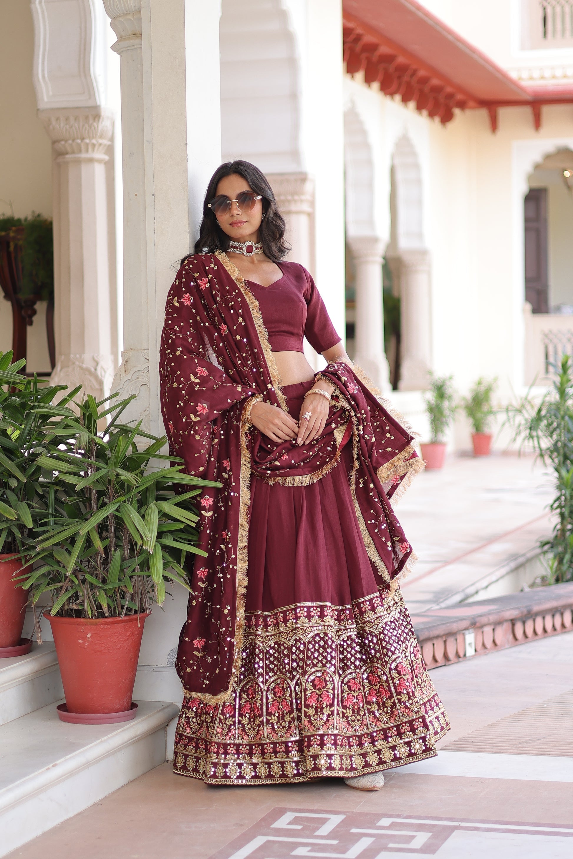 Flat 10% Buy 2 get 10% off VICHITRA SILK HEAVY SEQUINS AND TREAD EMBROIDERED LEHENGA CHOLI WITH DUPATTA (WDN87) 01