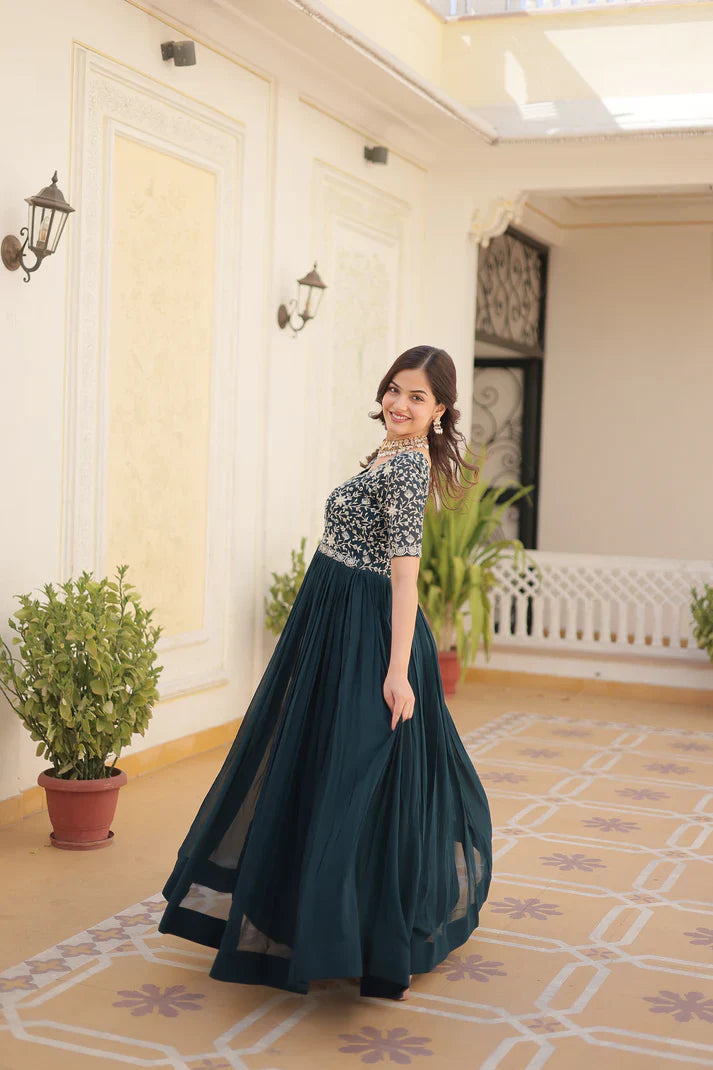 Designer Gown is luxury clothing Considered to be high quality Made by Zari-Thread & Sequins Embroidery. This is Made for Desirable Women's who deserve it