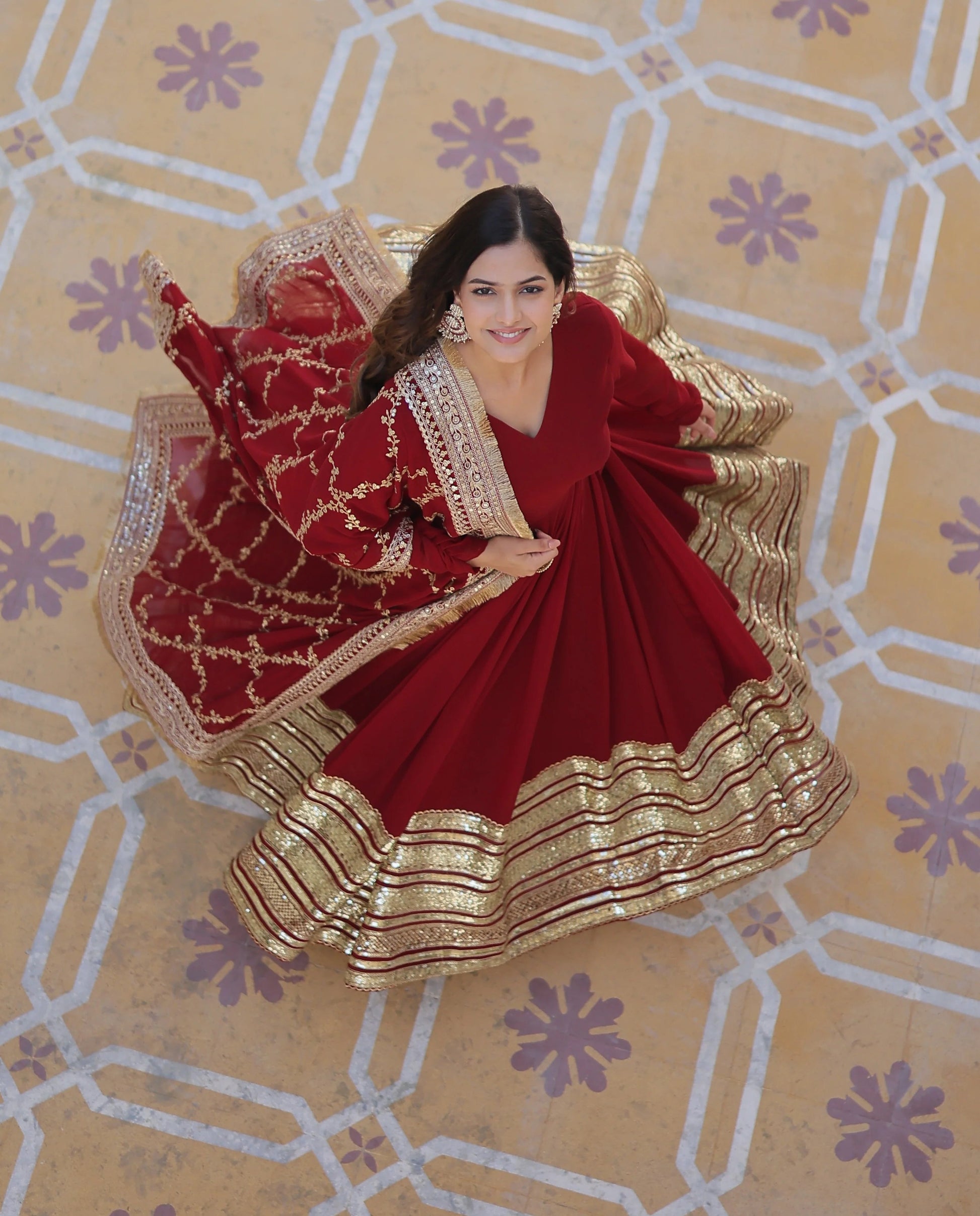 PREMIUM READYMADEFAUX BLOOMING SEQUENCE EMBROIDERED GOWN WITH DUPATTA SET (WDN01)