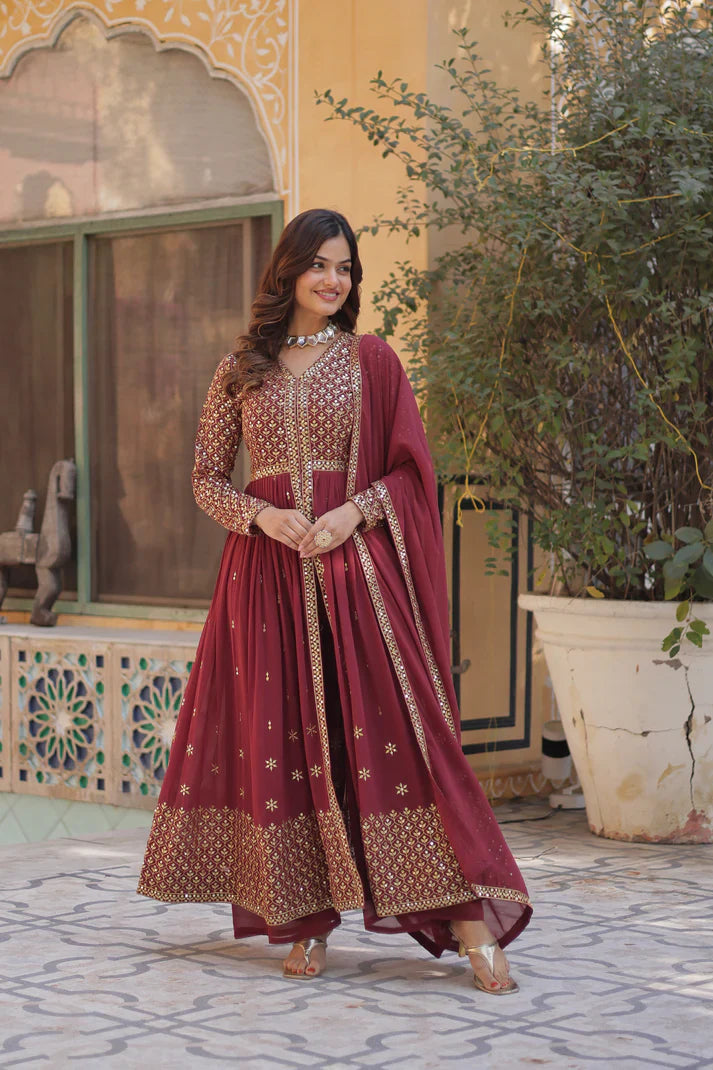 WEDDING SPECIAL FAUX GEORGETTE EMBROIDERED GOWN WITH BOTTOM AND DUPATTA(WD113) (01)