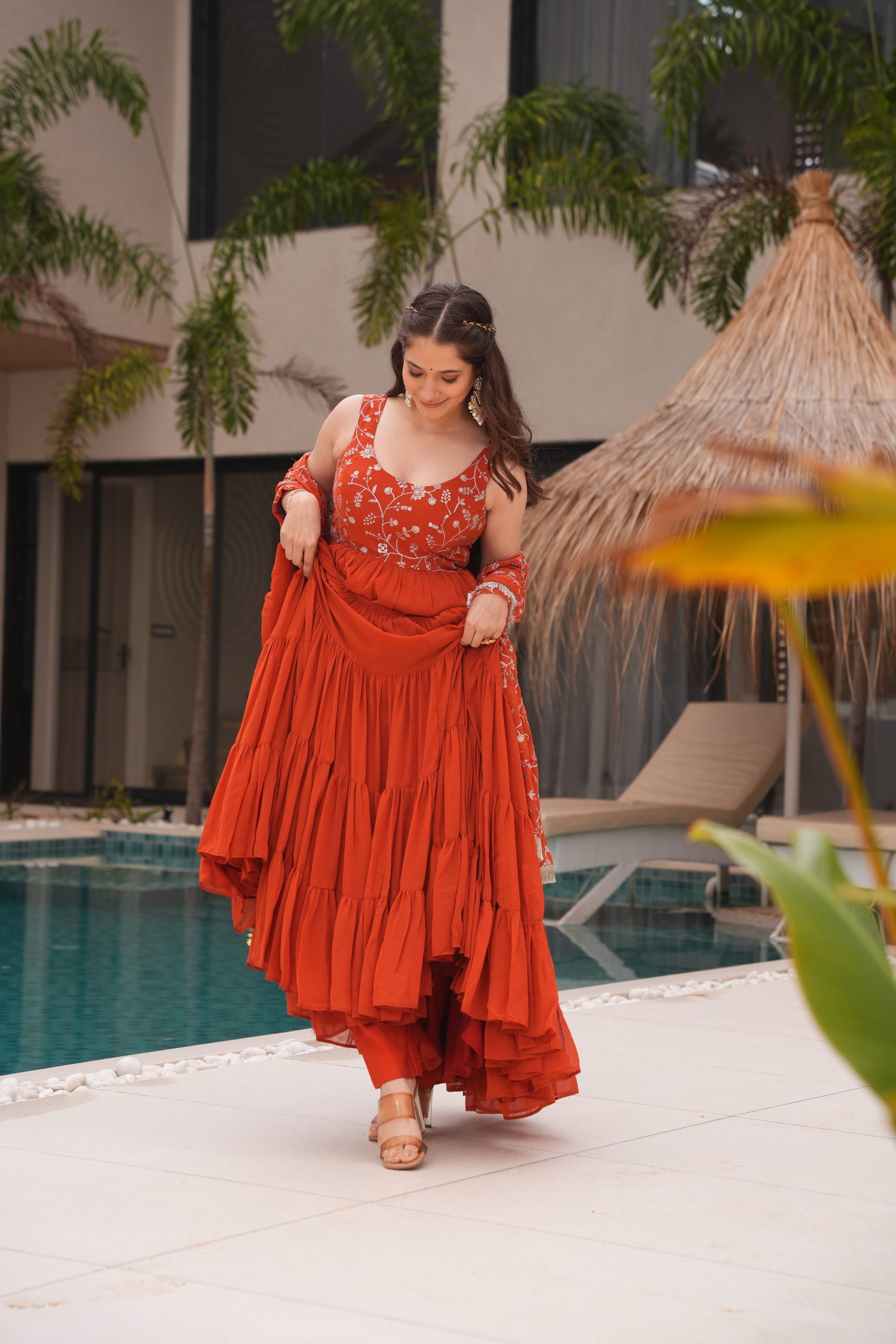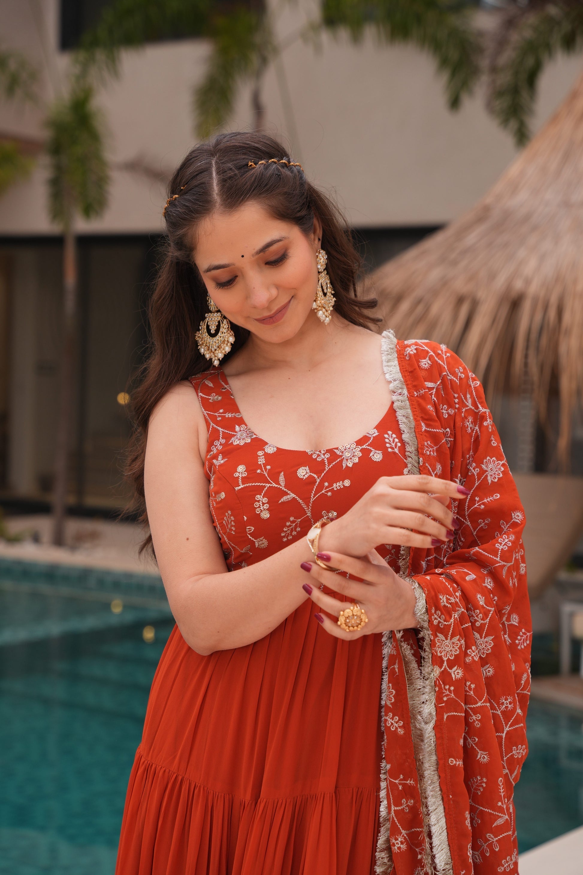 Flat 10% Buy 2 get 10% off WEDDING SPECIAL SOFT GEORGETTE EMBROIDERED GOWN WITH DUPATTA (WDN37) 01